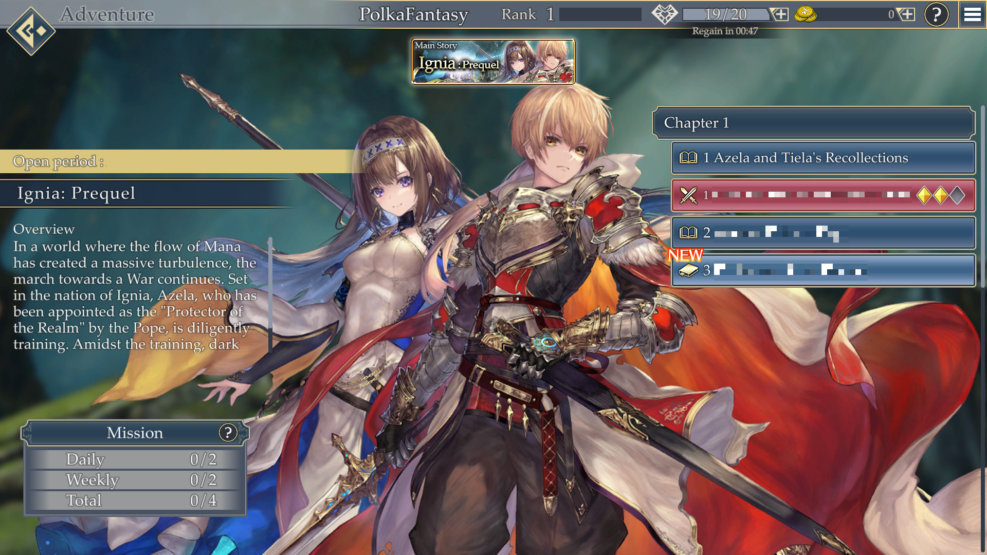 ② Select the quest you want to play from the list on the right side of the screen. There are two types of quests: [scenario quests](#scenario), which involve reading a story, and [battle quests](#battle-quest), which involve battles. As you complete quests, new quests will be added.