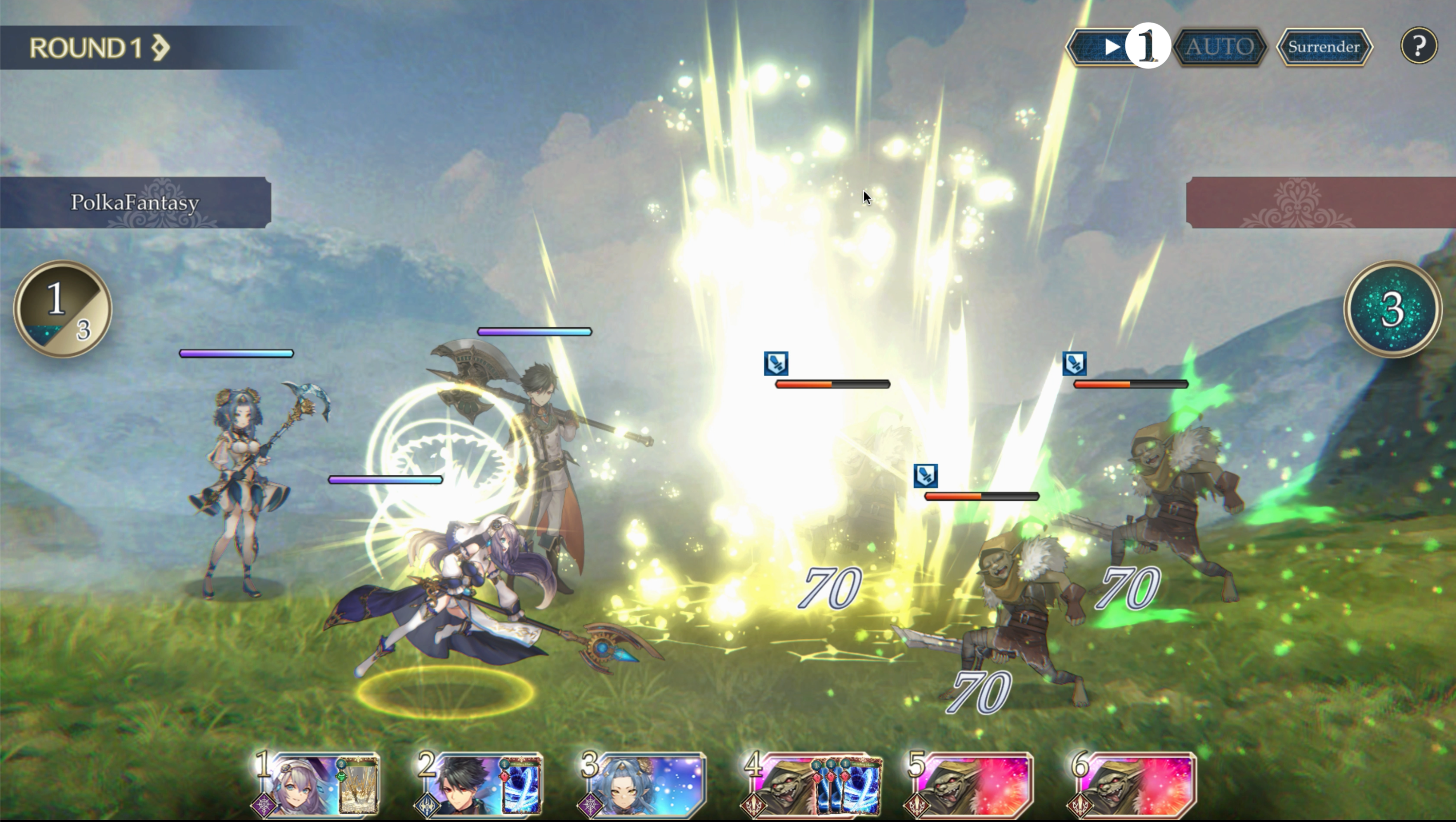 One feature that differs from the arena is the ability to fast-forward through the battle. Clicking the "►" button speeds up the development, but does not play the SEs or voices.